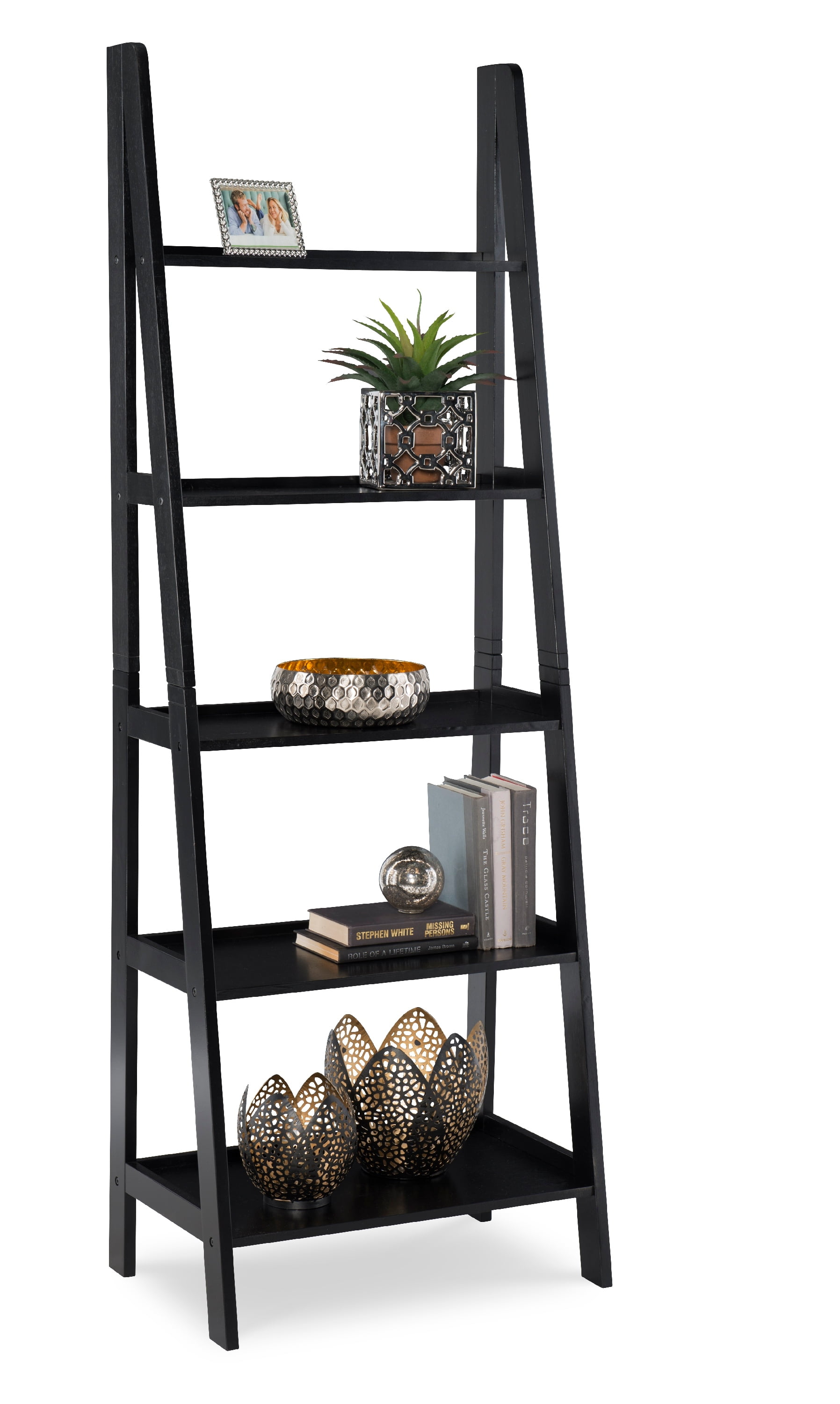 Linon Edson 5 Shelf Ladder Bookcase 72 Height Black Finish Walmart Com