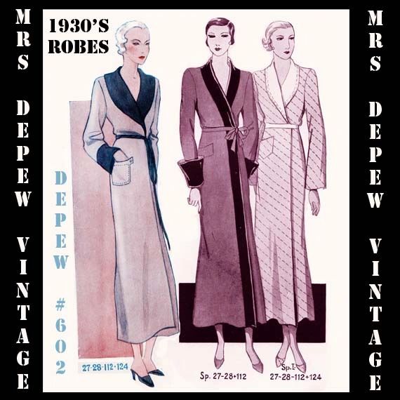 D A H Vintage Sewing Pattern 1930s French Robe Peignoir In Any Size Plus Size Included 602